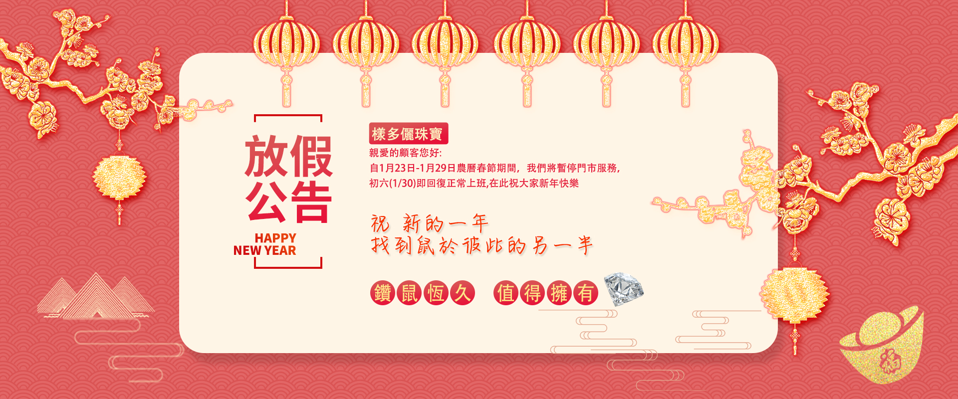 正值農曆新年期間,1/23-1/29將暫停門市營業